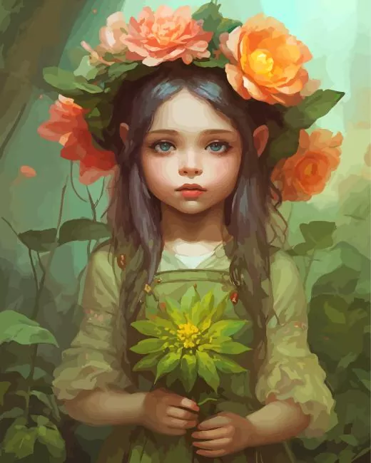 Adorable Girl Flowers Paint By Numbers