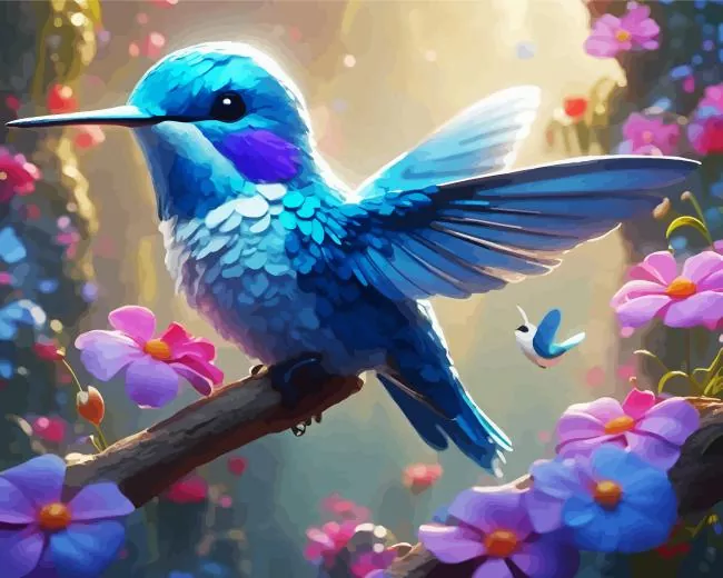 Baby Blue Hummingbird Paint By Numbers