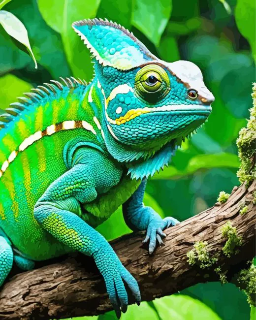 Blue And Green Chameleon Diamond Painting